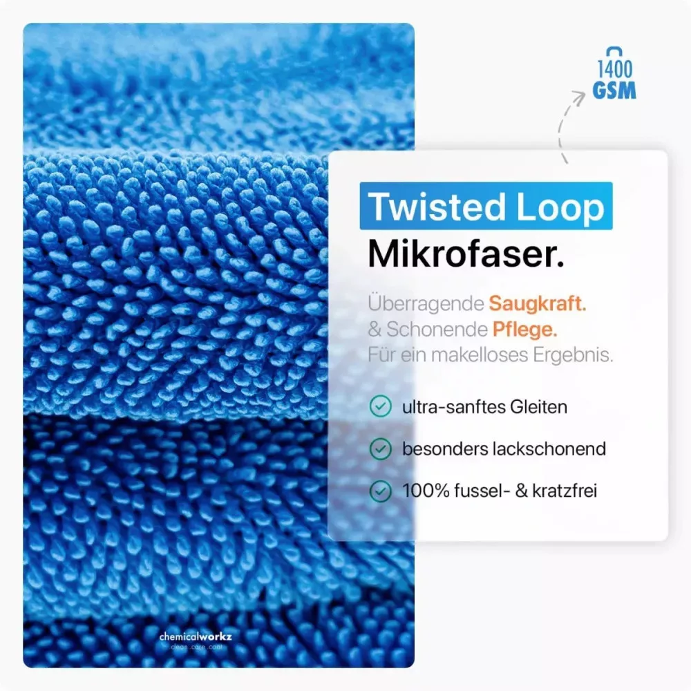 A ChemicalWorkz kétoldalas csavart hurkos szárítótörlőkendő egyedi és szuper puha mikroszálakból készül, amelyek nagyon hosszú élettartamúak. Ellentétben sok más ilyen típusú törlőkendővel, ennek a törlőkendőnek mindkét oldalán csavarhurkos szerkezet van.