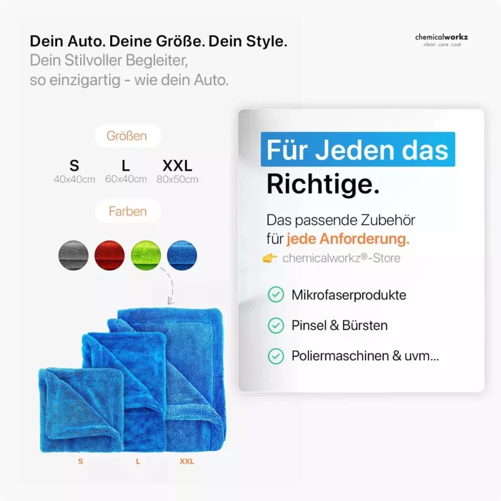 A ChemicalWorkz törlőkendők minden feladathoz magasfényű eredményeket biztosítanak. Újrafelhasználható, mosógépben mosható és környezetbarát. Tökéletes a külső felületek tisztítására vagy a szennyeződés eltávolítására a jármű belsejéből.
