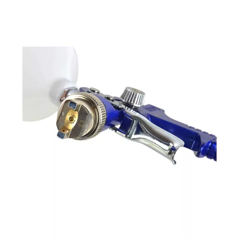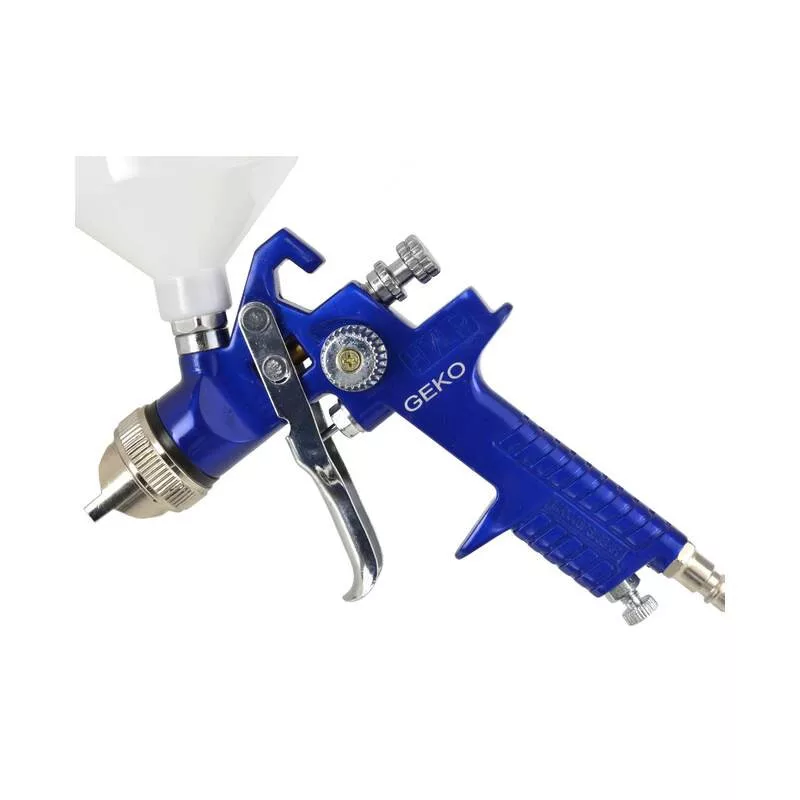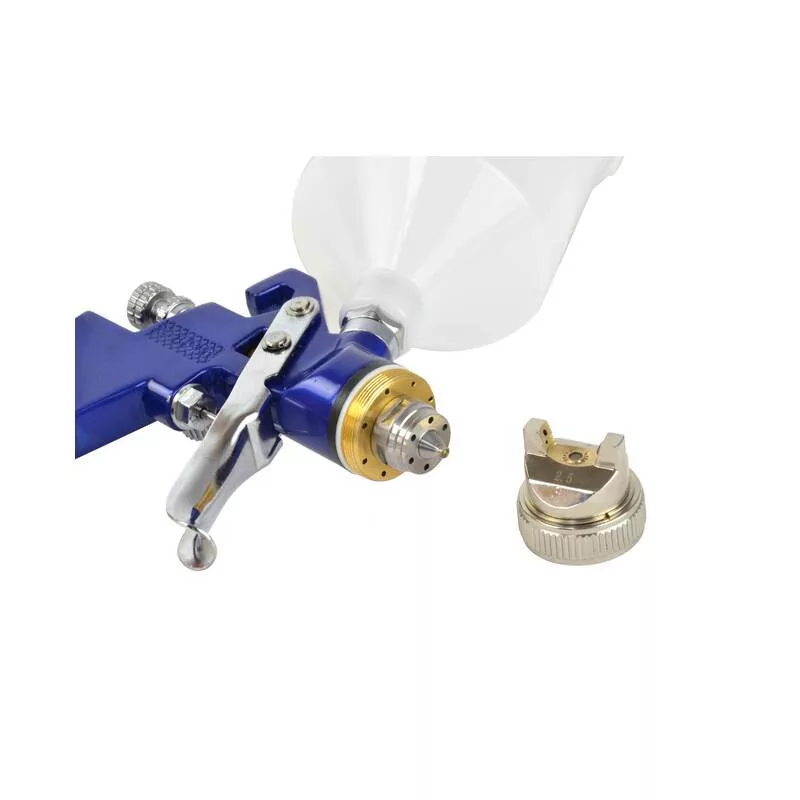 Kiváló minőségű festékszóró pisztoly, amely ideális választás sűrűbb festékekhez, alapozókhoz, szórható kittekhez, ipari bevonatokhoz, mind az autófényezés, asztalosipar és fémipar számára. A 600ml-es festéktartály lehetővé teszi a hosszabb munkaidőt anélkül, hogy folyamatosan újrakellene tölteni. Az 2,5mm-es fúvóka kiváló festékszórást biztosít, így tökéletes végeredményt érhetsz el vele. Könnyű és kényelmes használata révén ideális választás a barkácsolóknak és profi festőknek egyaránt. A HVLP G01168 Festékszóró pisztoly segítségével gyorsan és hatékonyan festhetsz, a precíz munkavégzés érdekében.
