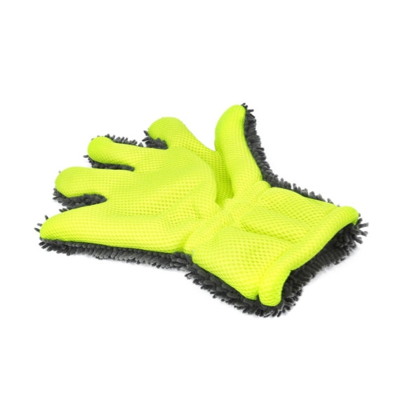 Kétoldalú mosókesztyű.Hálós oldala a nehezebb szennyeződések eltávolítására, pl. rovarok, a mikroszálas oldala a biztonságos mosáshoz.A kesztyű különösen ajánlott felnik mosásához.