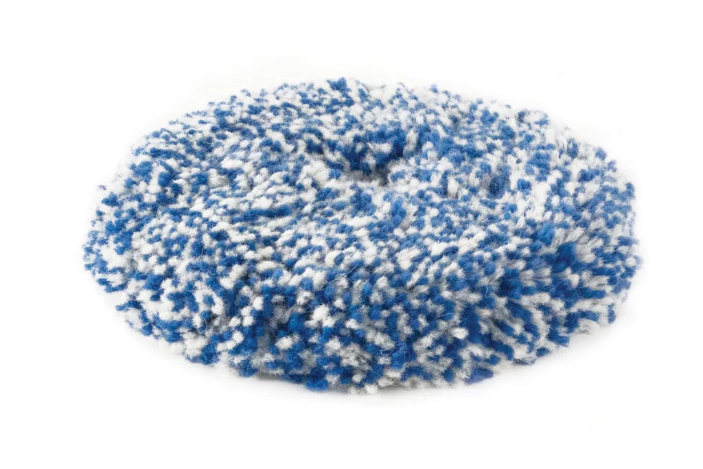 A RUPES Twisted Wool Pad Blue egy természetes birkagyapjúból készült polírozó korong, amelyet rotációs polírozógépekkel történő polírozáshoz terveztek.