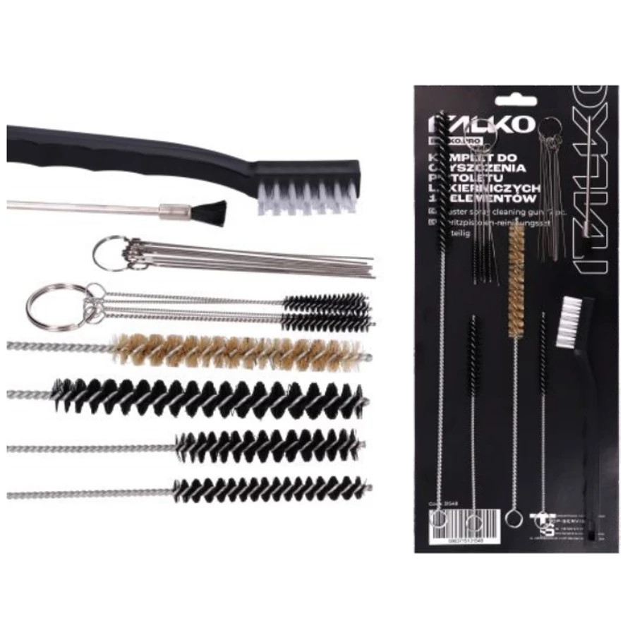 Szórópisztolyok takarításához. Tartalmaz kefét, különböző méretű tisztítótűket és egyéb eszközöket.