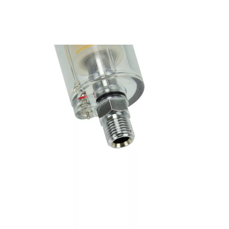 Vízleválasztó szűrő légszerszámokhoz. Használható a levegős vezetékrendszerbe csatlakoztatva, vagy közvetlenül a szórópisztoly alá helyezve. Kiszűri a légrendszerből és a kompresszorból érkező párát és egyéb szennyeződéseket, ezáltal is megelőzve a fényező és festőmunkálatok károsodását. A szűrő átlátszó burkolatán keresztül könnyen nyomon követhető az összegyűlt nedvesség mennyisége. A szűrő alja kézi visszacsapó szeleppel felszerelt, amelyen keresztül leereszthető az összegyűlt kondenzvíz.